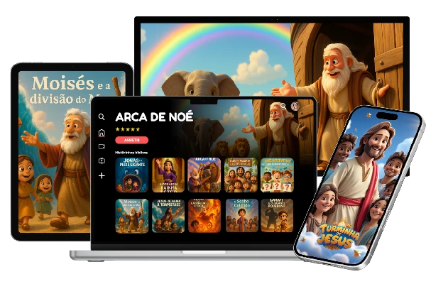 Milhares de famílias já usam o Turminha de Jesus pra ensinar seus filhos sobre Deus de forma prática e divertida.